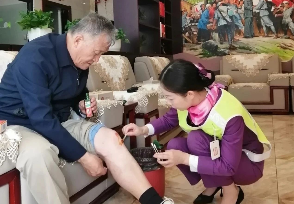 11月14日上午,一名老年游客因不慎扭伤膝盖来到井冈山站综合服务室,当班人员见状即刻上前帮忙,并从冰箱取出专用冰袋冷敷,过后又拿来红花油为老人涂抹。经过简单的处理后,老人疼痛有所缓解,随行游客也为工作人员竖起大拇指。